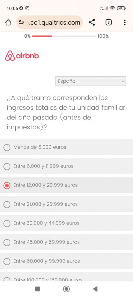 Pregunta nº 10: ¿Qué porcentaje de los ingresos de tu unidad familiar proviene de tu actividad como anfitrión en Airbnb?