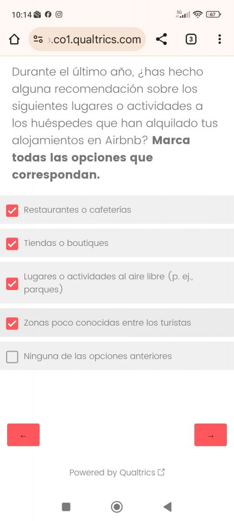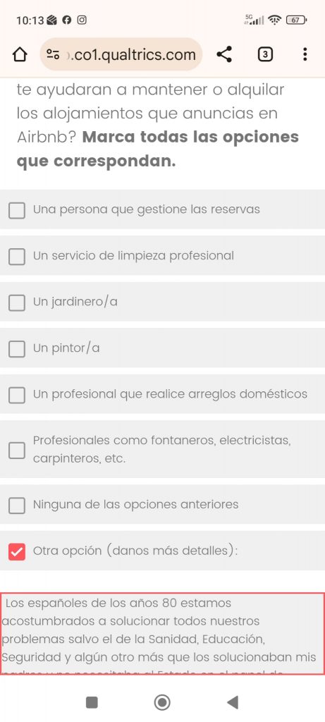 Respuesta de Airbnb: Gracias por dedicarle su tiempo a esta encuesta.